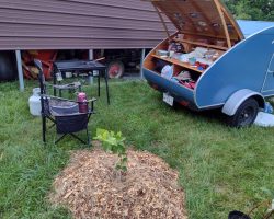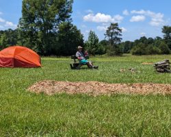 There is only limited cell phone service on the farm so you are lucky to get a text message or call through. There is a certain ability to relax when you are disconnected. We put the campsite in the back field in the most important part of the field from a visual perspective and an agricultural perspective. We want this campsite to be a focal point of a wonderful story. The campsite has fruit bearing trees in it that replicate the blackberry, figs, pawpaw and elderberry plants that are bountiful on the farm. There is a fire circle and a bench in the camping circle. There is room for a big tent or several small tents. We want this to be a special place that leads to special memories.